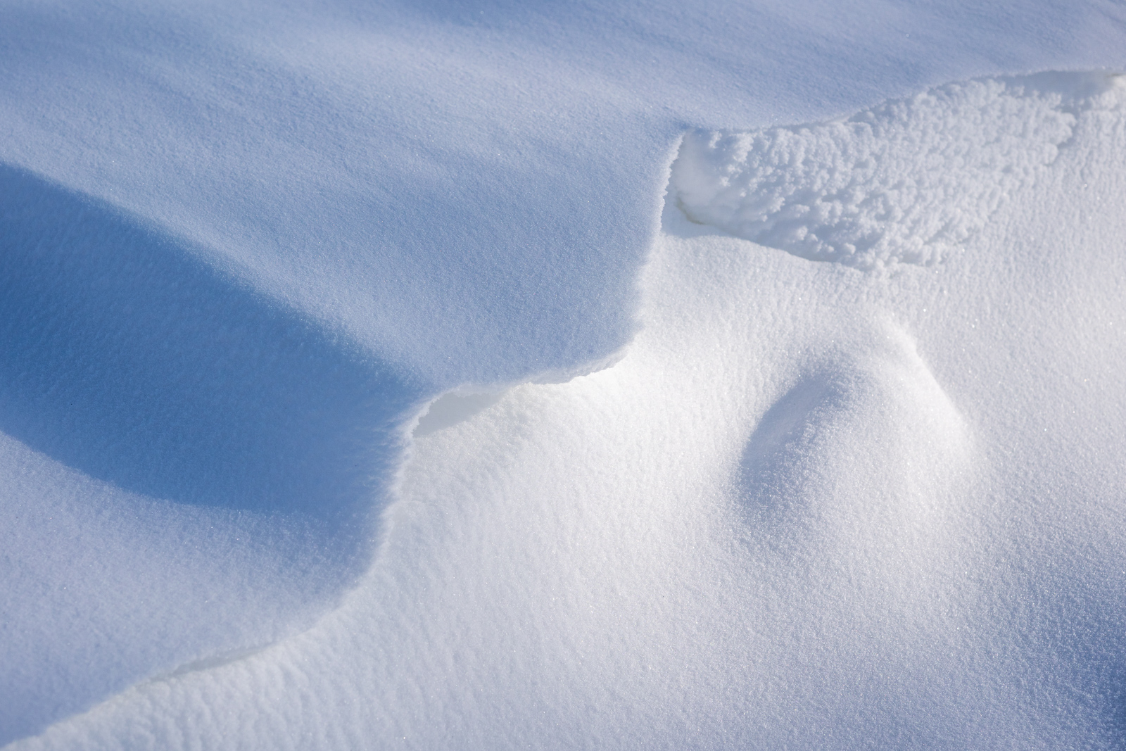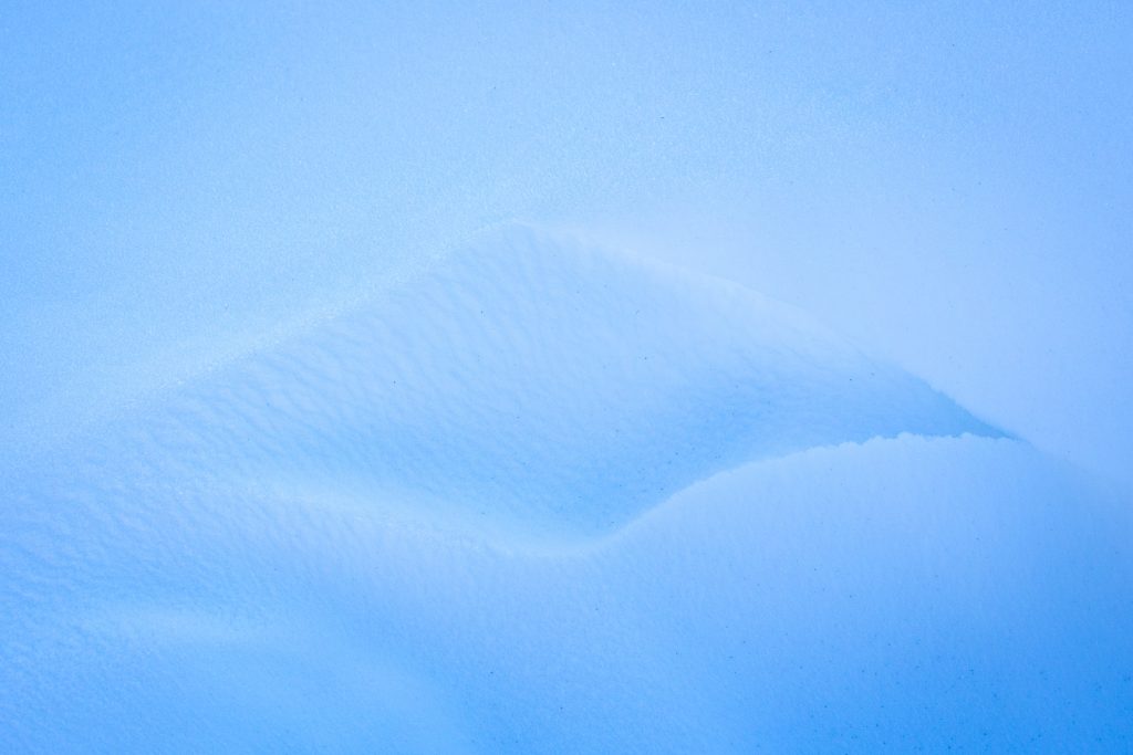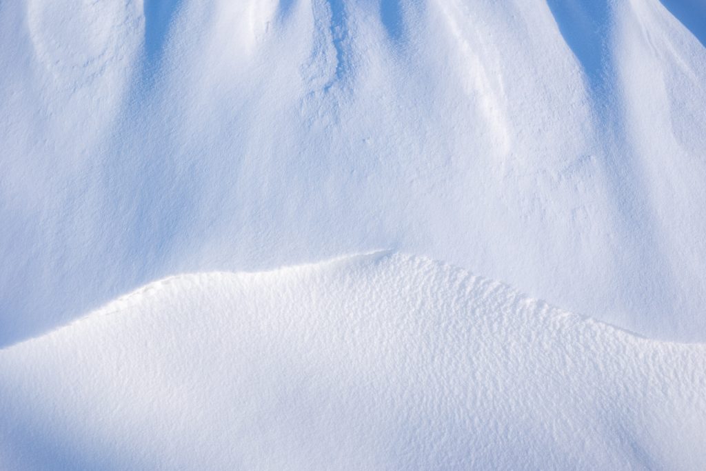 Als wir an dem Samstag gerade losgefahren waren, fiel Daniel ein, dass er noch etwas vergessen hatte einzupacken. Ärgerlich, er musste noch mal umdrehen. Doch die Schneeverwehungen am Straßenrand ließen mir keine Ruhe. Also stieg ich samt Ausrüstung aus und verbrachte die Wartezeit damit, diese Kunstwerke aus Schatten, Licht und Eis auf den Sensor zu bannen. Es war eisig, denn der Wind pfiff an dieser Stelle ungebremst über die Landschaft. Ich konnte nur wenige Fotos machen, bis meine Hände so kalt waren, dass ich die Ausrüstung kaum noch halten konnte. Also packte ich sie schnell wieder ein, stellte mich mit dem Rücken zum Wind und hielt Ausschau nach Daniels Auto, das zum Glück schon kurz darauf auf mich zukam.