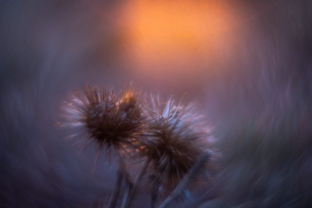 Am gleichen Tag zog es uns zum Sonnenuntergang noch mal raus, um in einem kleinen Naturschutzgebiet in der Nähe eine Abendrunde zu drehen. Jeder von uns hatte eine Kamera mit Vintagelinse dabei, um hier oder da eine Kleinigkeit am Wegesrand zu fotografieren. Die Ausbeute war klein, aber gar nicht so übel.